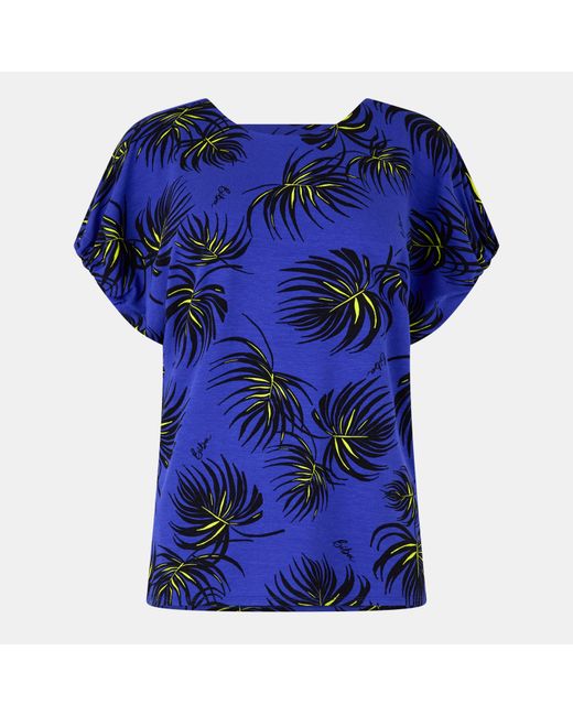 Women's Blue Jersey Tab Short-Sleeve Blouse