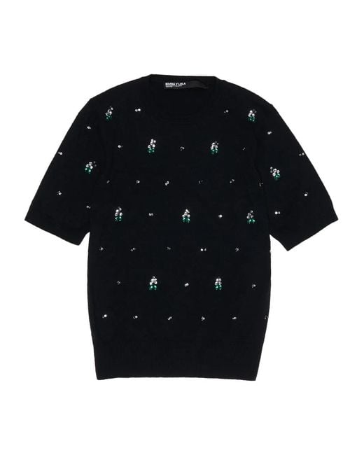 Women's Black Embellished Short-Sleeve Top