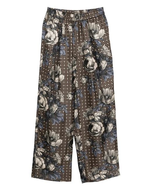 Coffee brown elasticated waistband floral print Size: M. Gender: Female. Material:Silk. Colour: grey