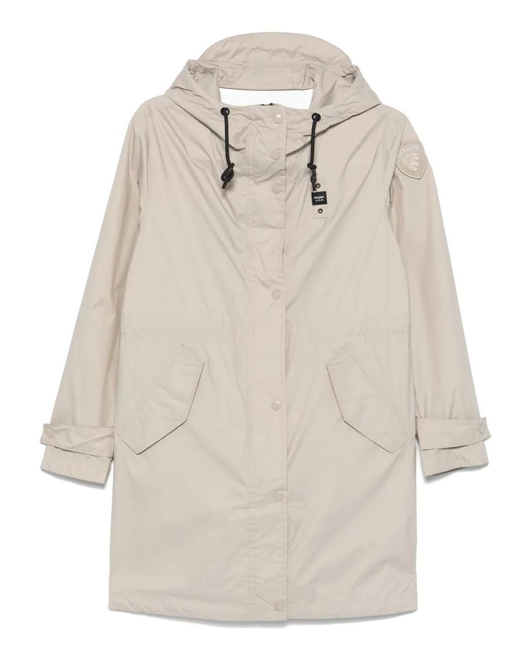 Light beige front press-stud and zip fastening drawstring hood two front flap pockets belted cuffs Size: L. Gender: Female. Material:Polyamide. Colour: natural