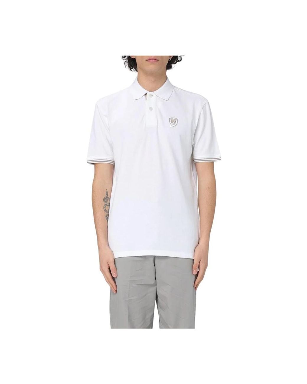 Blauer Embroidered Polo Shirt pairs classic polo styling with a refined embroidered crest and subtle striped cuff detail, ideal for casual and semi-formal looks. Key attributes: White | Traditional collar | Two-button placket | Short sleeves | Embroidered crest on chest | Striped detailing on cuffs Colour: white