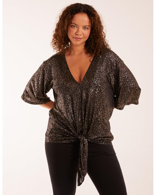 Women's Black Leopard V Neck Tie Front Top