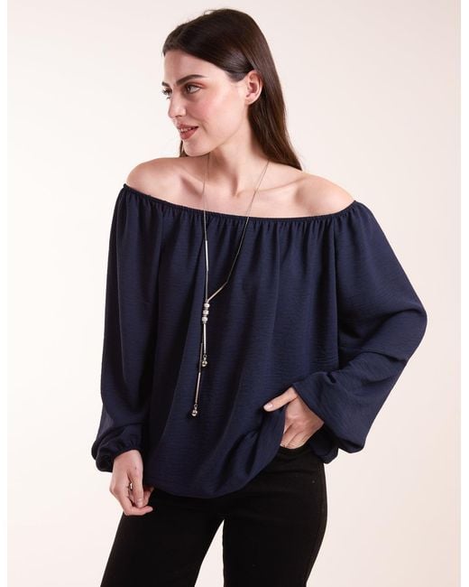 Women's Blue Necklace Bardot Elasticated Top