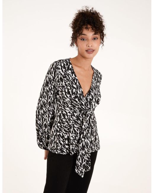 Women's Black Wrap Front Tie Back Top