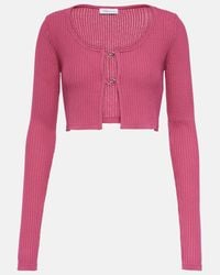 Blumarine Women's Pink Ribbed Cropped Long-Sleeve Cardigan