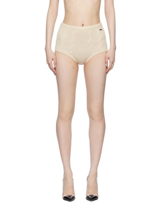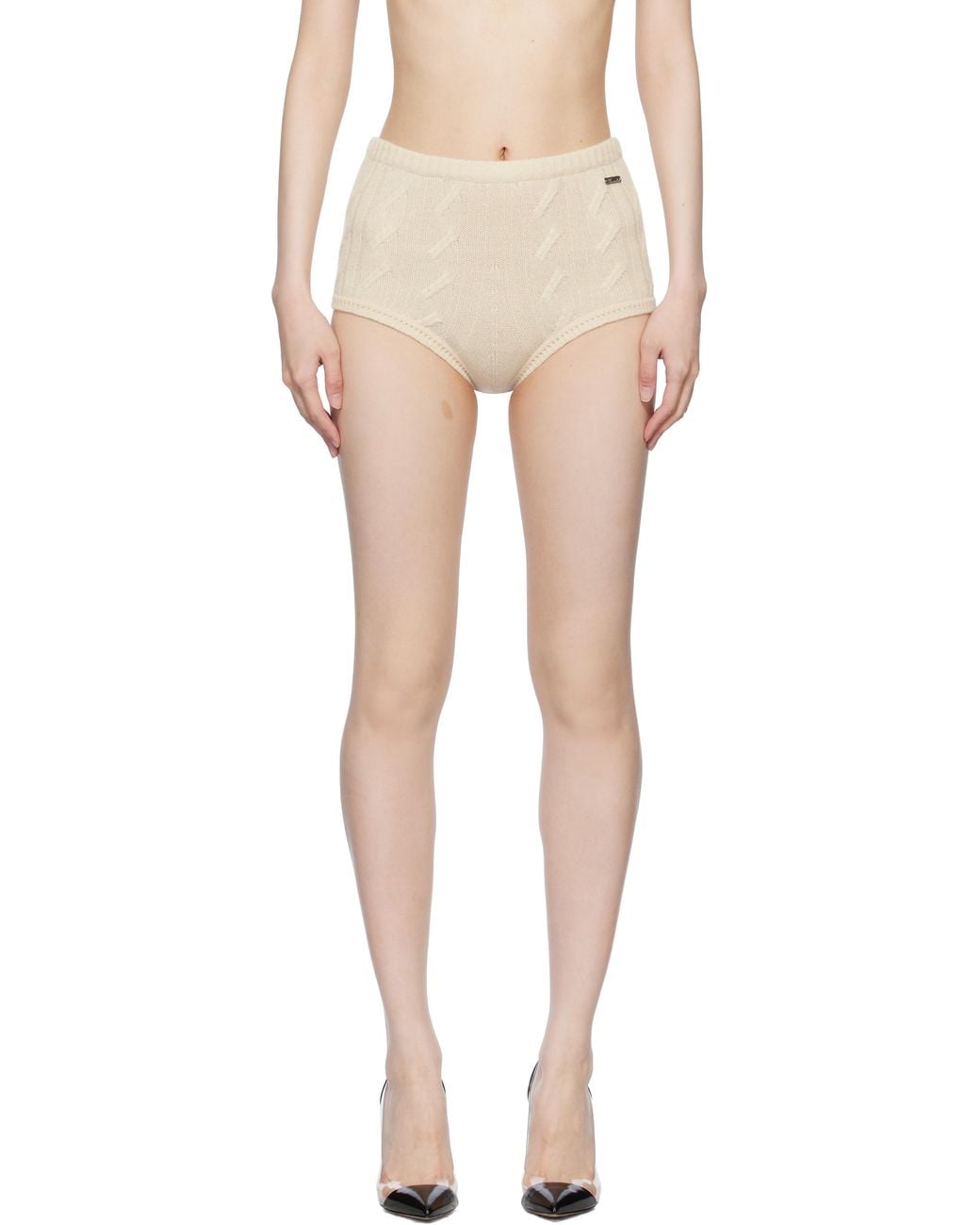 Cable-knit wool- and cashmere-blend shorts. · Rib-knit elasticized waistband and cuffs · Logo plaque at front waist Supplier color: Croissant Colour: multicolour