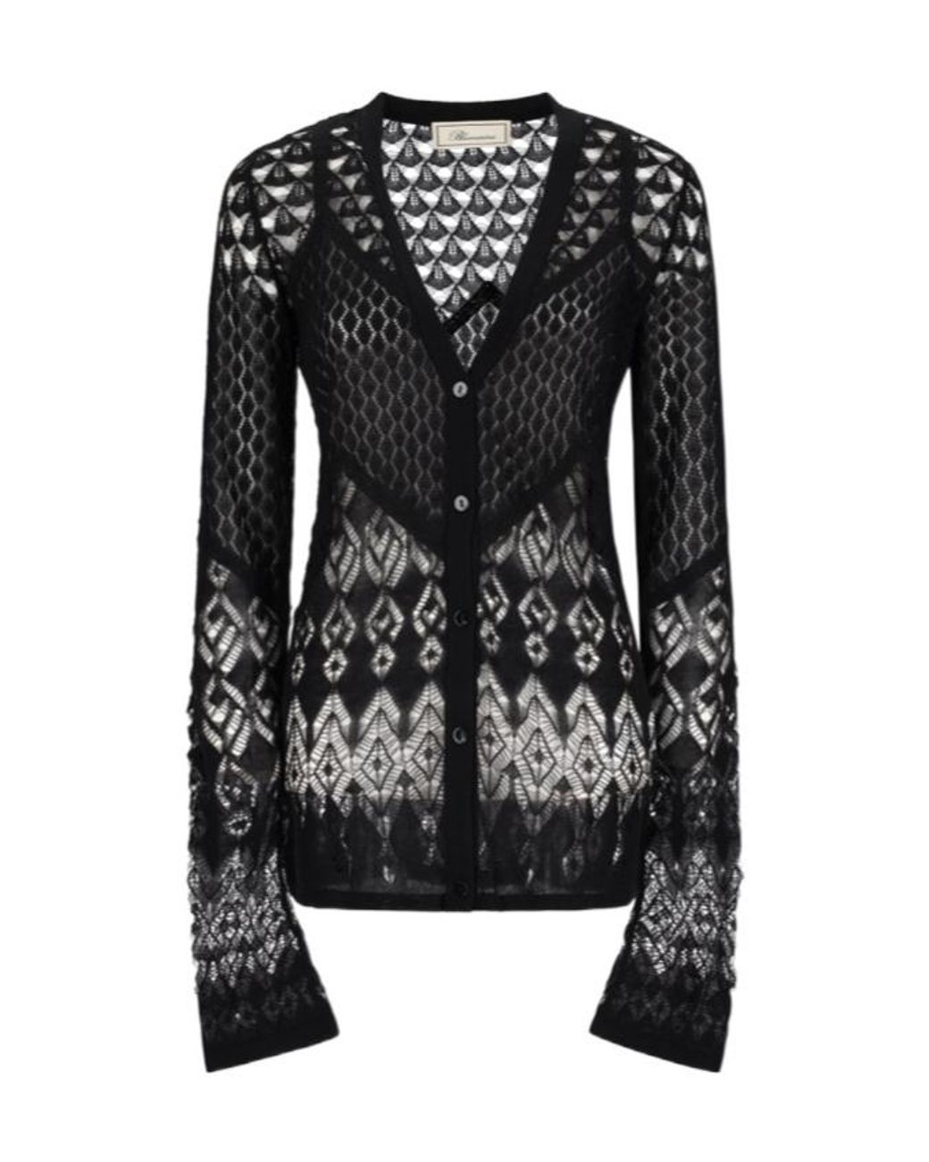 Long-sleeved V-neck, single-breasted closure. Colour: black