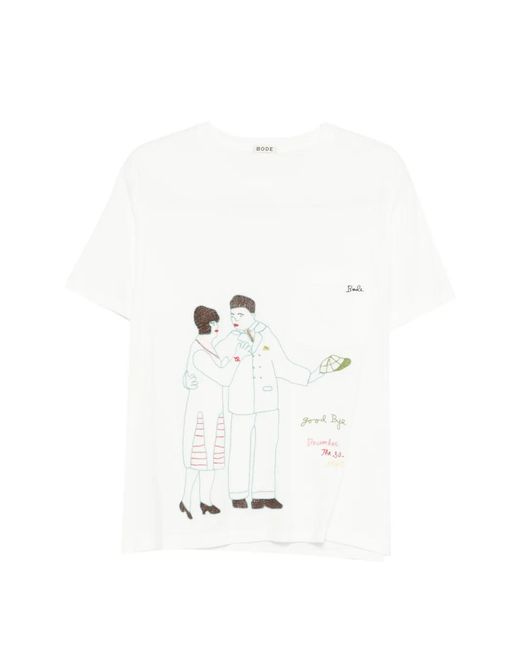 Cream graphic embroidery round neck short sleeves Size: XS. Gender: Male. Material:Cotton. Colour: white