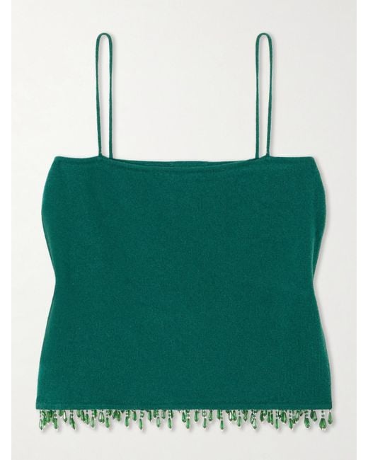 Women's Green Fringed Bead-Embellished Wool And Cashmere-Blend Top