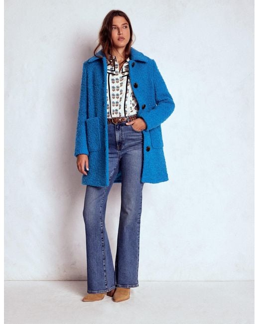 A heritage staple, our classic Carlisle coat features deep patch pockets for hands and phones and comes in a deliciously tactile fuzzy textured finish. Essentially, it's a wearable hug. Colour: blue