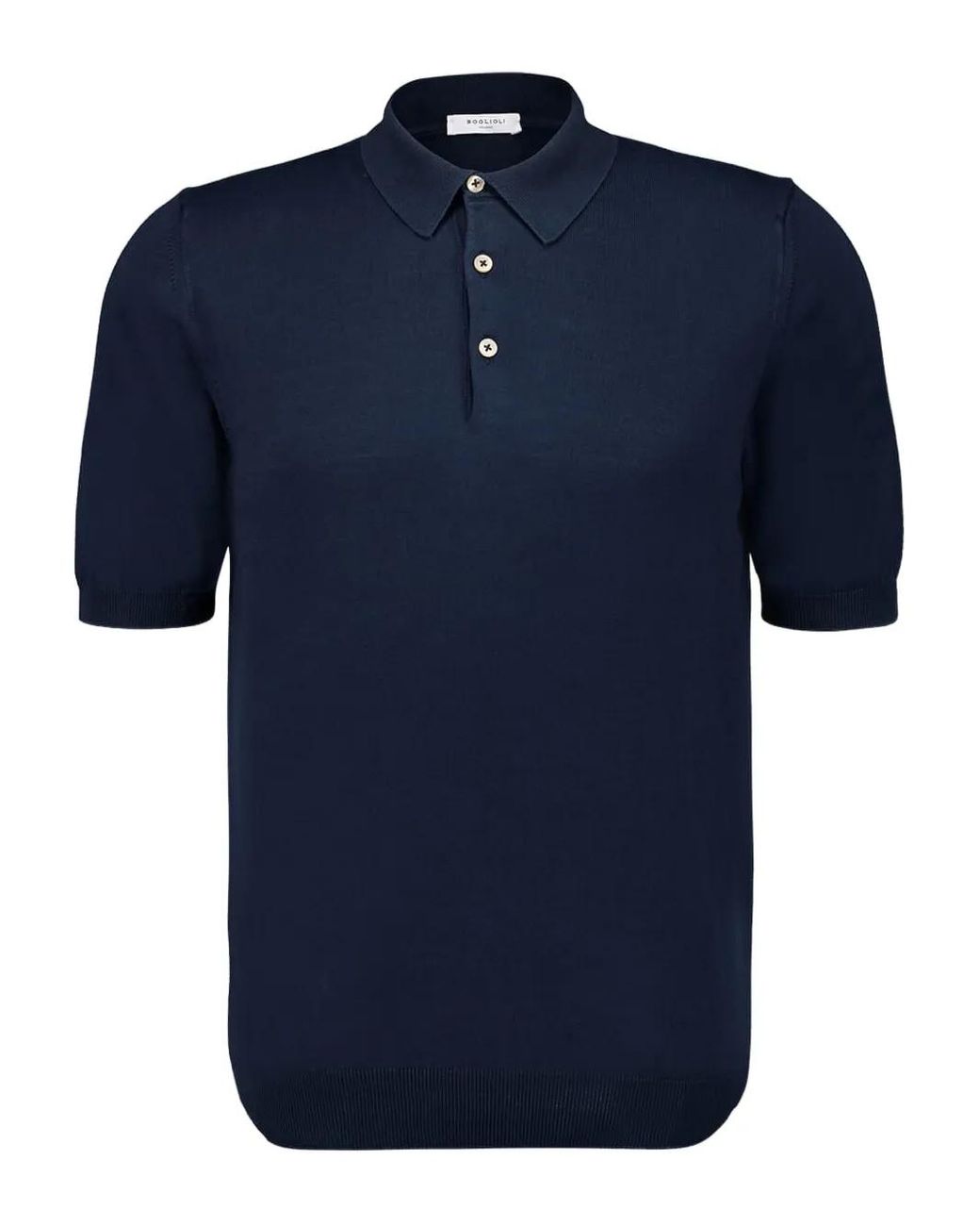 Navy blue front button placket polo collar short sleeves straight hem Size: S. Gender: Male. Material:Cotton. Colour: blue