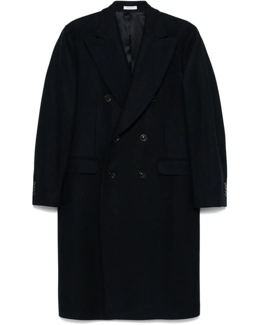 Black virgin wool blend double-breasted button fastening peak lapels long sleeves buttoned cuffs chest welt pocket two front flap pockets central rear vent full lining straight hem Size: 50. Gender: Male. Material:Cashmere/Viscose/Polyamide/Virgin Wool. Colour: black