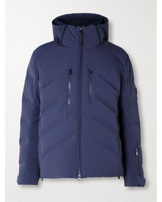 Men's Blue Jervis-D Panelled Quilted Shell Hooded Down Jacket