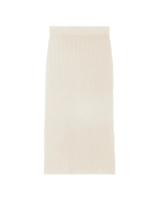 Women's White Jupe Mi-Longue À Design Côtelé