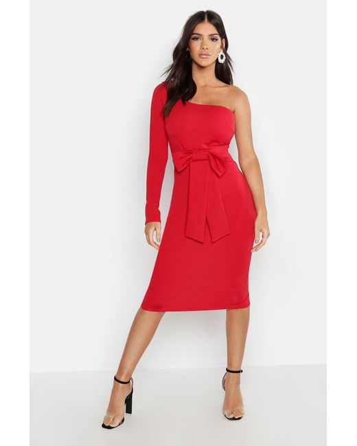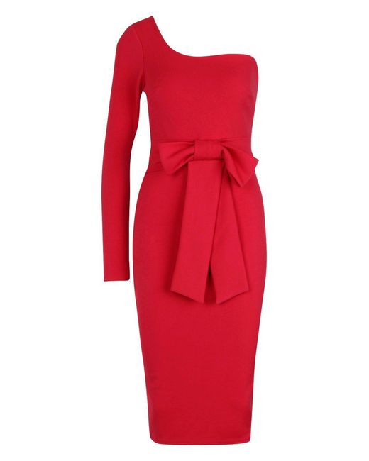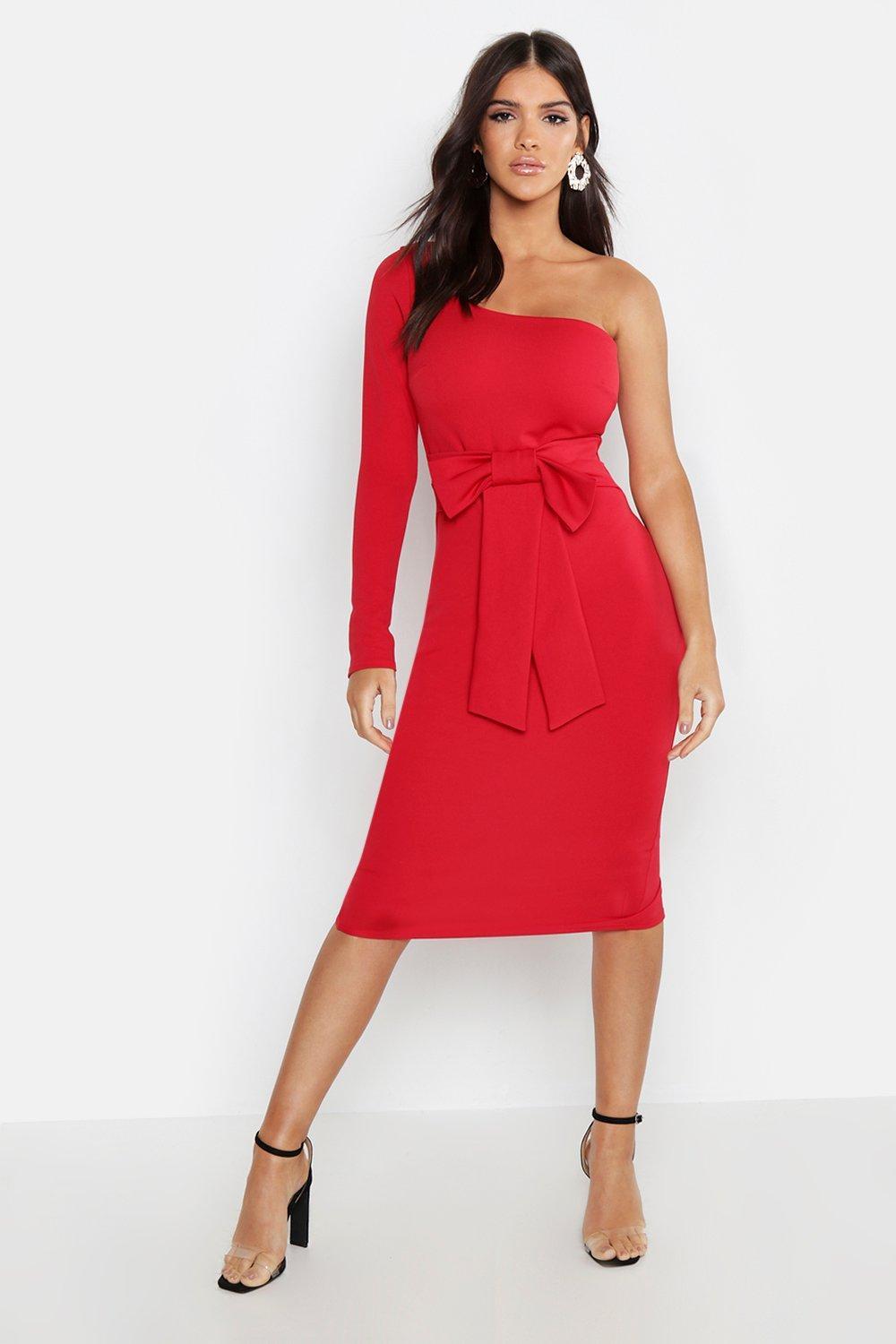 Women's Red Bow Detail One Sleeve Midi Dress