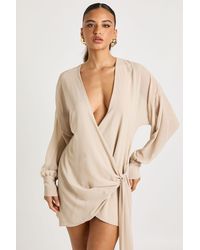 Boohoo Women's Black Long Sleeve Wrap Mini Dress