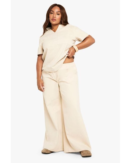 - Plus Cotton Twill Drawstring Waist Wide Leg Trouser