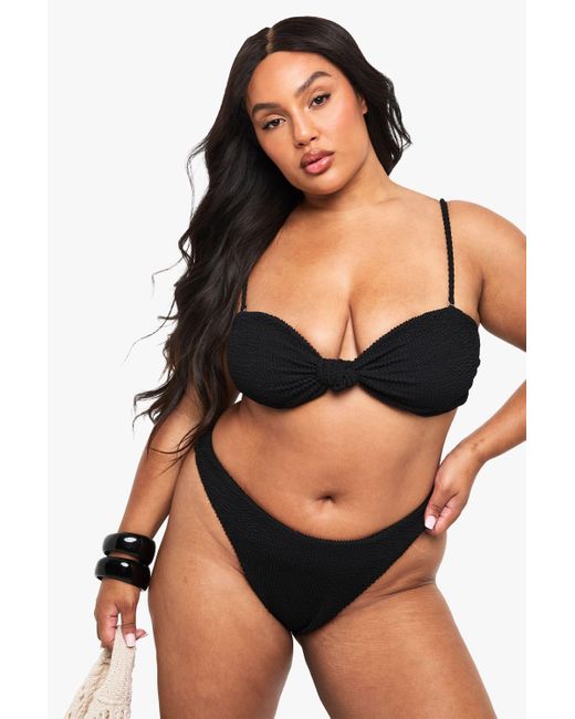 Women's Black Plus Crinkle Knot Front Bikini Top