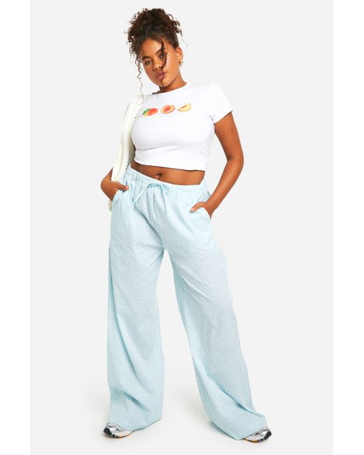 Women's Blue Plus Elasticated Waist Gingham Trouser