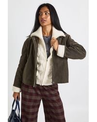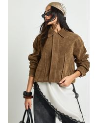 Boohoo Women's Brown Plus Suede Collared Relaxed Jacket