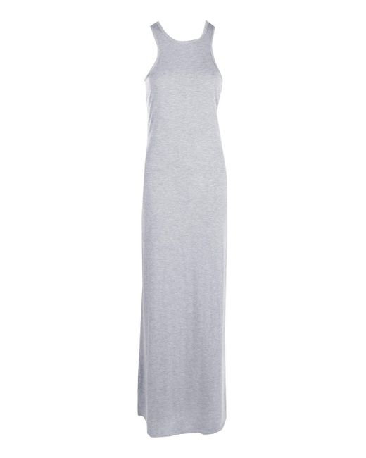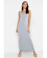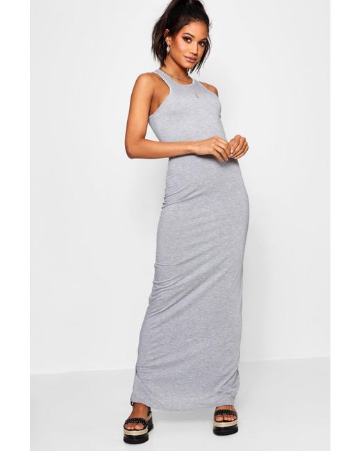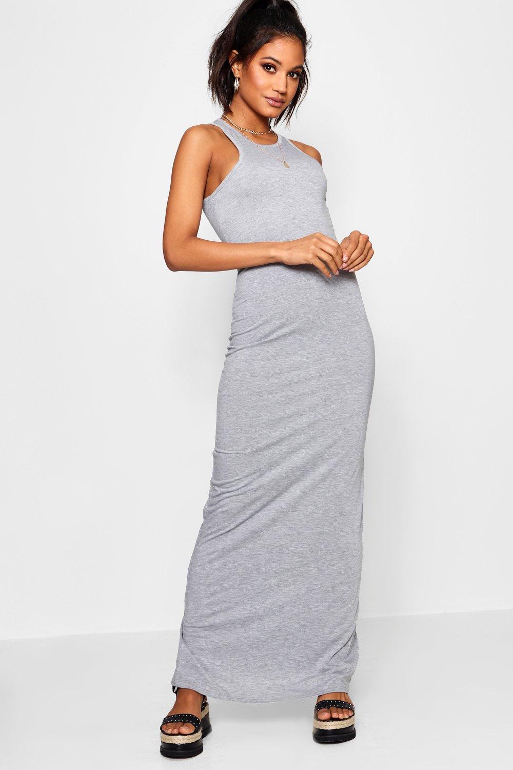 Women's Gray Basic Racer Front Maxi Dress