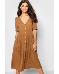Dresses are the most-wanted wardrobe item for day-to-night dressing. From cool-tone whites to block brights, we've got the everyday skater dresses and party-ready bodycon styles that are perfect for transitioning from day to play. Minis, midis and maxis are our motto, with classic jersey always genius and printed cami dresses the season's killer cut - add skyscraper heels for a serioulsy statement look. Dress up or down in style with boohoo. Colour: brown