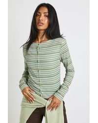 Boohoo Women's Natural Striped Long Sleeve Button Through Top