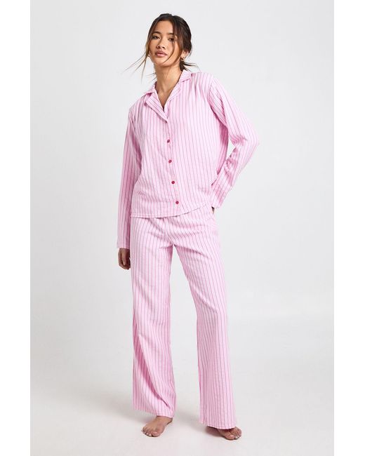 - Striped Textured Long Sleeve Shirt & Trouser Pyjama 3 Piece Set