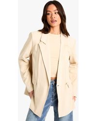 Oversized fit blazer with linen-look texture for effortless sophistication Single button fastening creates a streamlined silhouette Notched lapels add a classic tailoring element Functional front pockets provide practical storage Longer length design specially…