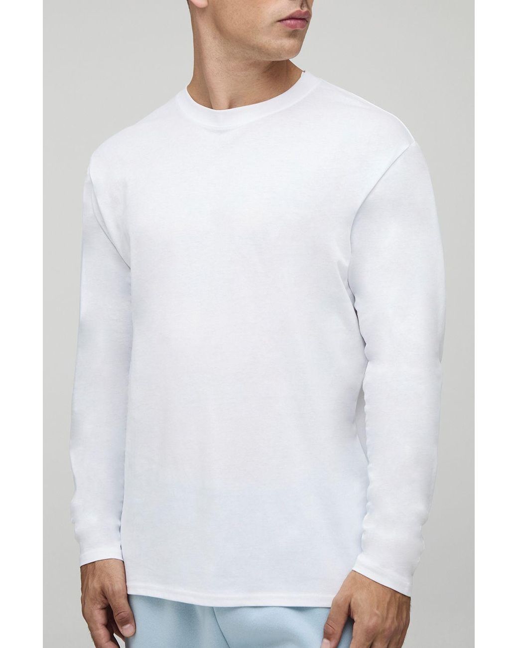 Men's White Basic Long Sleeve Regular Fit Crew Neck T Shirt