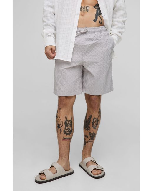 Men's Grey Long Length Textured Swim Trunks