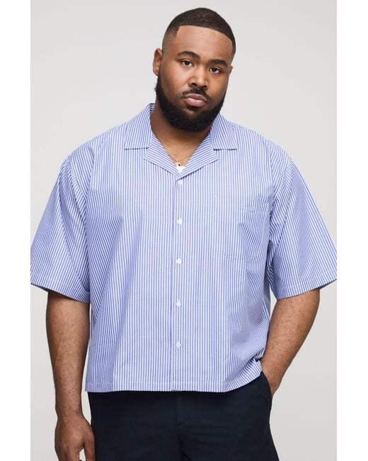 Men's Blue Plus Poplin Stripe Boxy Oversized Shirt
