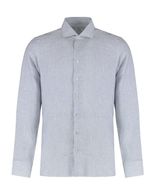 Men's Blue Striped Long-Sleeve Shirt