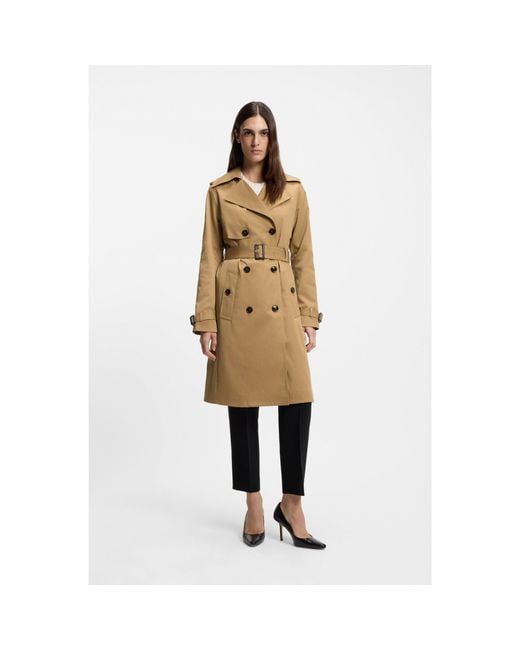 Women's Natural Double-Breasted Trench Coat With Buckled Belt