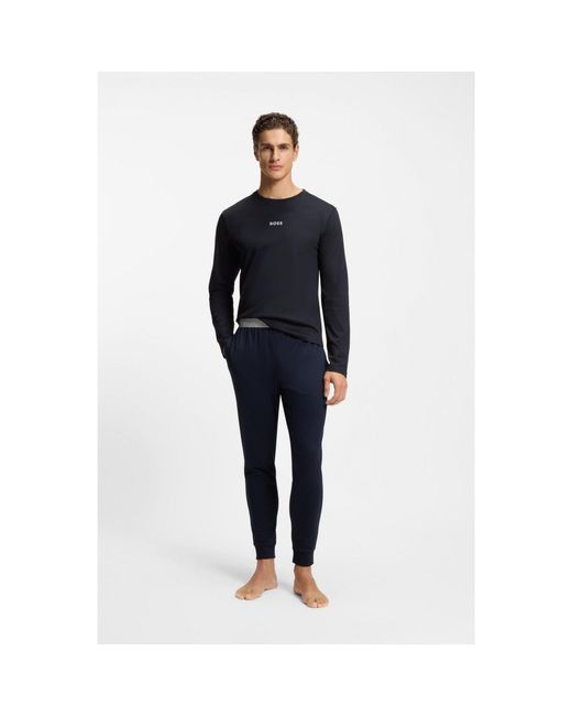 Men's Blue Cotton Pyjama Set With Monogram Waistband