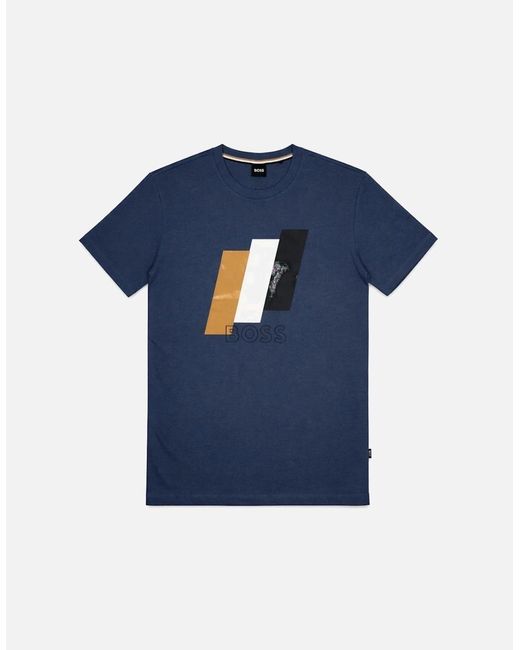 Revamp your weekend wardrobe with the BOSS Distressed Tiburt T-Shirt. Crafted from a premium cotton-blend jersey, this relaxed-fit design delivers all-day comfort with a refined edge. It features a classic ribbed crew neckline, short sleeves, a straight hem, and elasticated trims for a comfortable, easy wear. Ideal for casual gatherings or effortless evening outings. Colour: blue