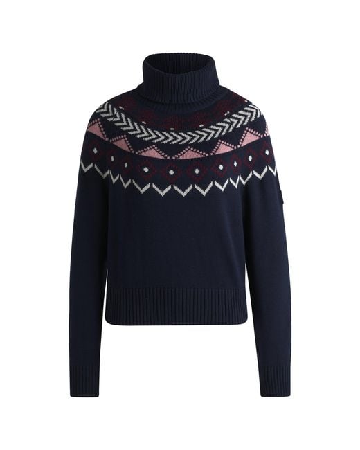Women's Blue Equestrian Rollneck Jumper With Knitted Pattern