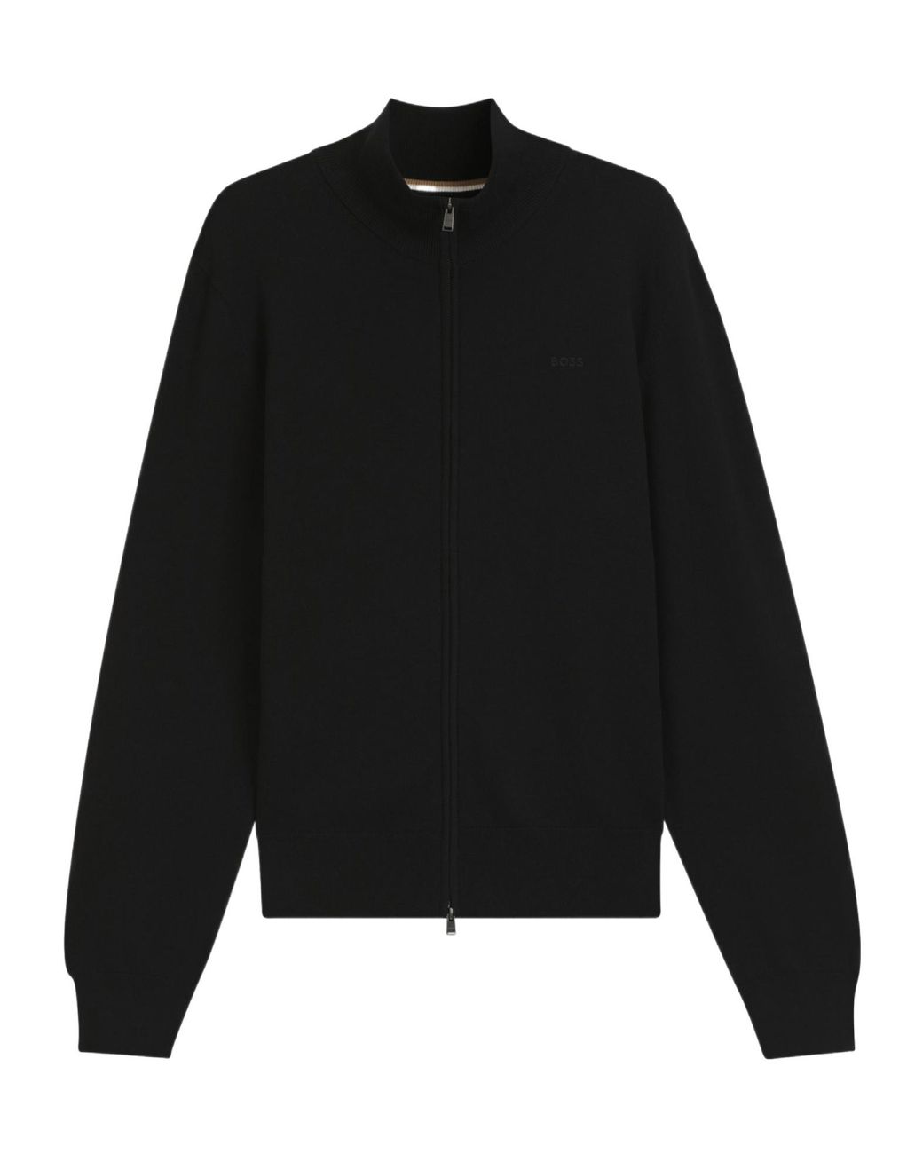 Men's Black Boss Upalano Zip-Up High Neck Cardigan