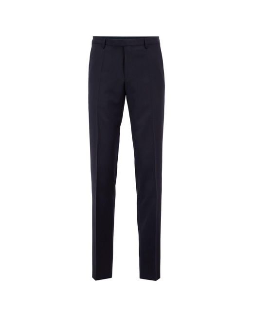 Men's BOSS Lenon Trousers in dark blue.<BR><BR>Regular-rise formal trousers with a straight fit by BOSS Menswear. These tailored trousers are crafted in virgin wool with a serge weave to pair effortlessly with a host of professional looks. Add a contrasting BOSS jacket for a fresh take on suiting.<BR><BR>- Regular fit.<BR>- Regular rise.<BR>- Hook and zip closure.<BR>- Straight leg.<BR>- Flat front.<BR>- Front french pockets.<BR>- Back welt pockets.<BR>- Partially lined. <BR>- Main material: 100% Virgin Wool.<BR>- Ref: 50318825-401 Colour: blue