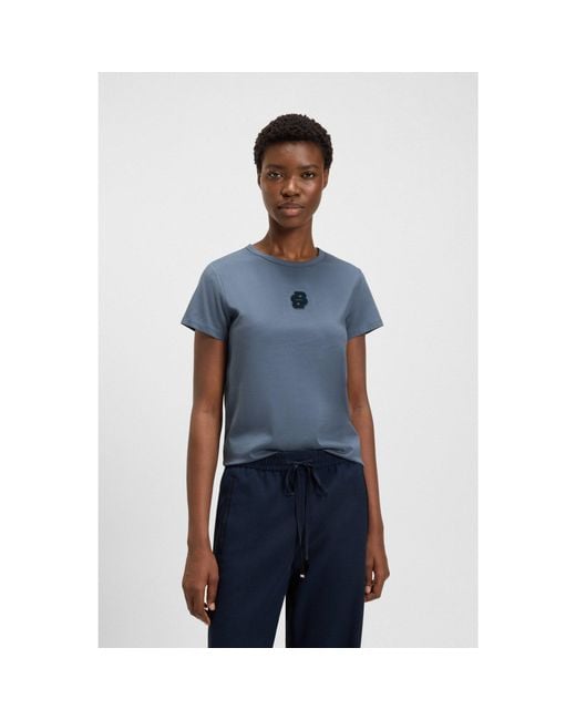 Women's Blue Mercerised-Cotton T-Shirt With Double B Monogram