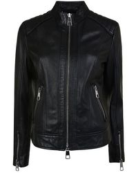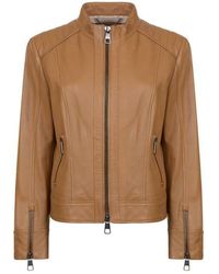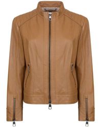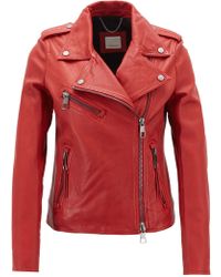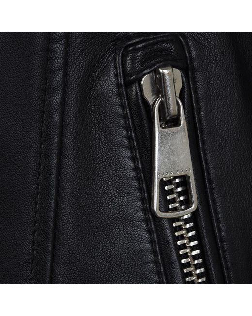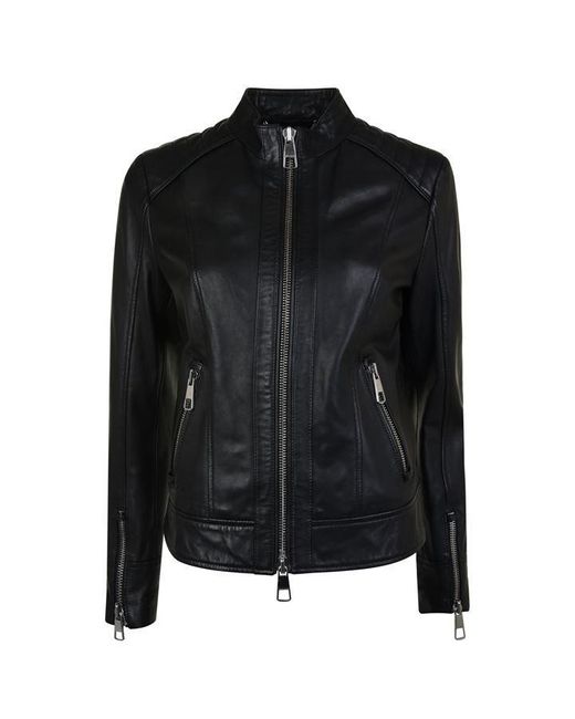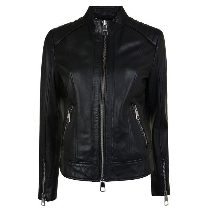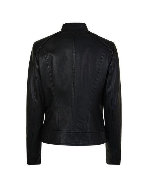 Complete your everyday ensemble with this biker lambskin nappa leather jacket from BOSS. Designed in a contemporary biker style, this piece is crafted entirely of lambskin nappa and boasts quilted ribbed detailing to the shoulders and zips to the cuffs. Featuring a branded hardware central zip fastening, this stylish piece features a stand collar and two zip pockets, a perfect addition to your wardrobe. Size selection: European sizing (Standard sizing)Fits true to size, take your normal sizeRegular fit100% lamb leather Lining: 52% polyester, 48% viscoseSleeve lining: 100% polyesterGentle chemical dry cleaning Black 36 (8). Colour: black