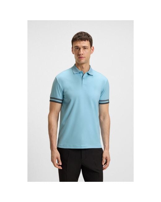 With piqué-knit stripes and a sleeve logo, this BOSS Menswear polo shirt is a modern classic. Slim fit. Interlock cotton with a soft finish. Colour: blue