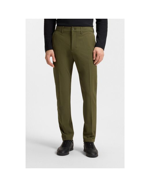 Featuring a rubberised logo and slim cut, these easy-iron BOSS Menswear trousers are crafted in quick-dry stretch fabric. Integrated coin pocket. Hidden drawcords. This product contains at least 80% better raw materials. This product is partly created with recycled polyester. We at HUGO BOSS prefer recycled polyester from pre- and post-consumer textile waste and do our best to phase out polyester from PET bottles. Colour: green