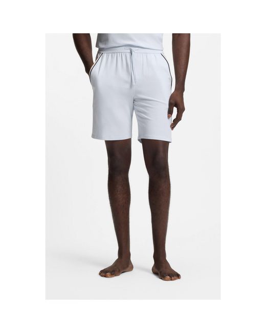 Men's White Stretch-Cotton Pyjama Shorts With Signature-Stripe Tape