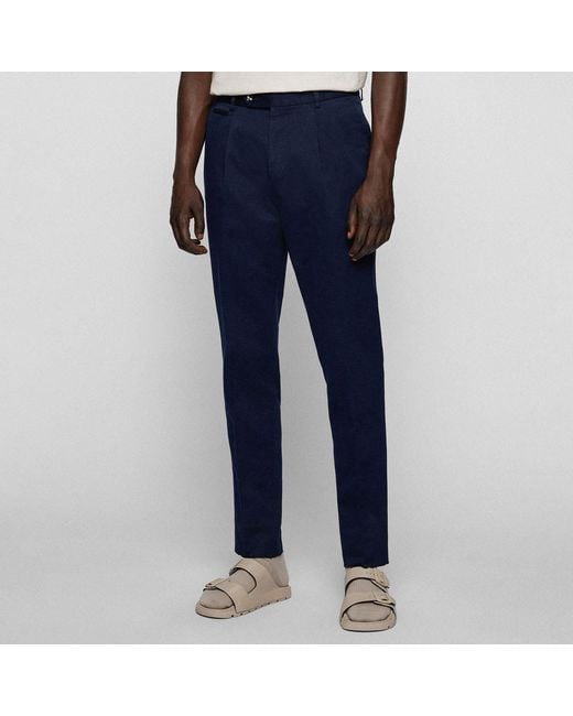 Hook and zip closure. Side pockets. Belt loops. Straight leg. Colour: blue