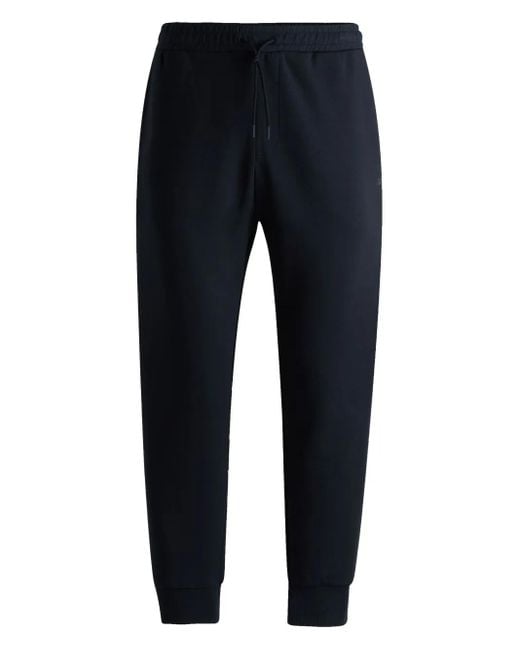 Navy blue elasticated drawstring waistband side pockets elasticated hem tapered leg design Size: XL. Gender: Male. Material:Cotton/Elastane. Colour: blue