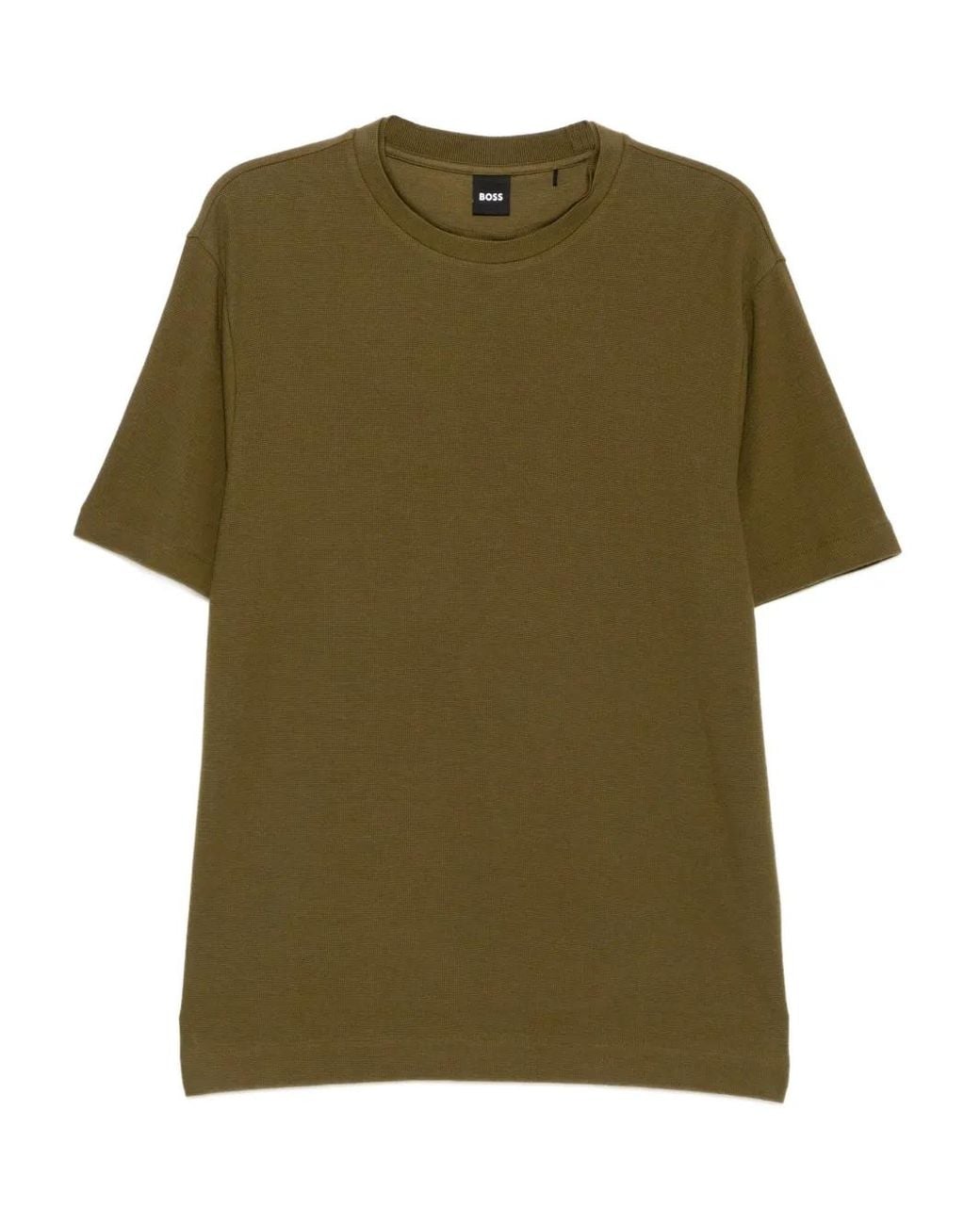 Khaki green crew neck short sleeves short side slits straight hem Size: S. Gender: Male. Material:Modal/Cotton. Colour: green
