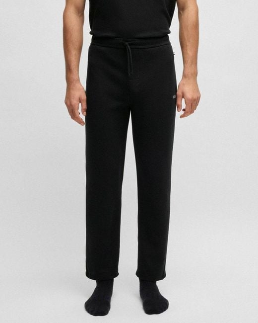Men's Black Waffle Cotton-blend Pyjama Bottoms With Embroidered Logo
