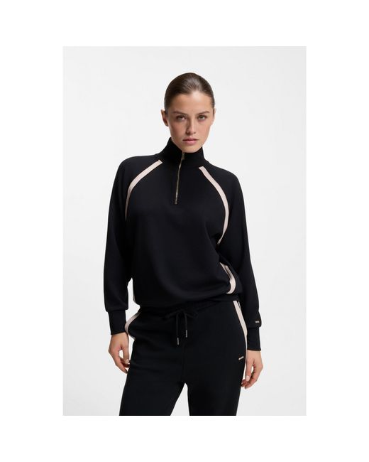 Women's Black Zip-Neck Sweatshirt With Contrast Inserts