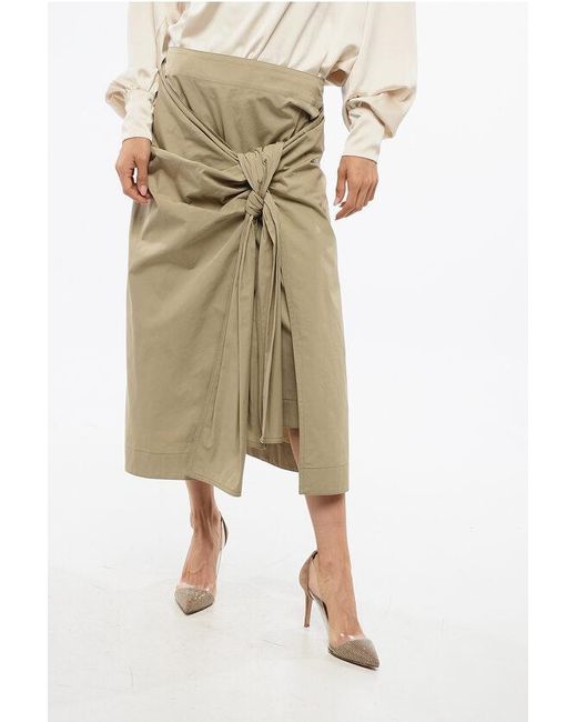 - Poplin Midi Skirt With Front Draping